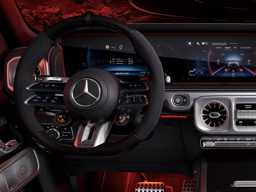 V8 biturbo engine, 5 seats, 4 bags, iconic G-Wagon with brute power and prestige.