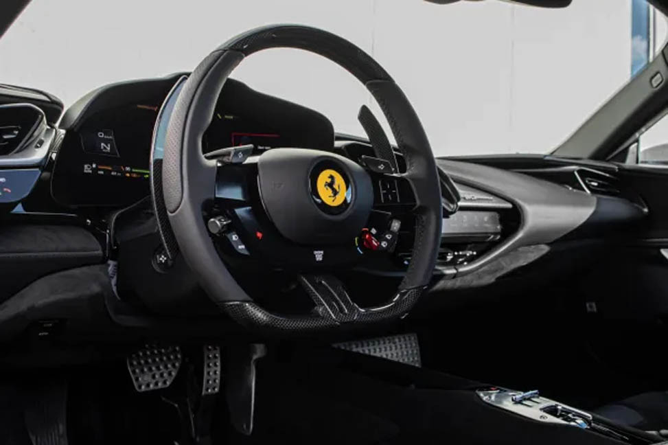 Hybrid V8 engine, 2 seats, 1 bag, stealthy color, hypercar performance.