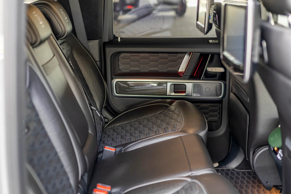 V8 tuned engine, 5 seats, 4 bags, Brabus-enhanced G-Wagon with wild design.